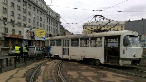 Но! В результате схода с рельсов совершил столкновение с припаркованным автомобилем Хюндай, отмечает Главное.