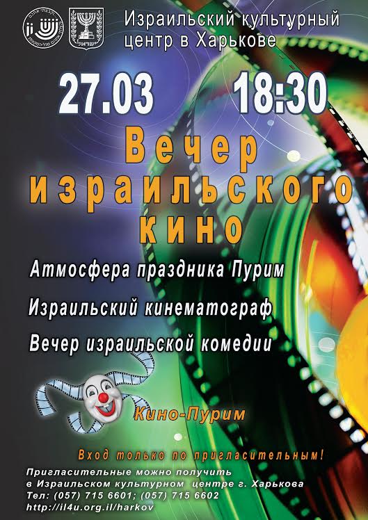 В дни самого весело израильского праздника Пурим, Израильский культурный центр Харькова дарит жителям и гостям города Вечер израильского кино.