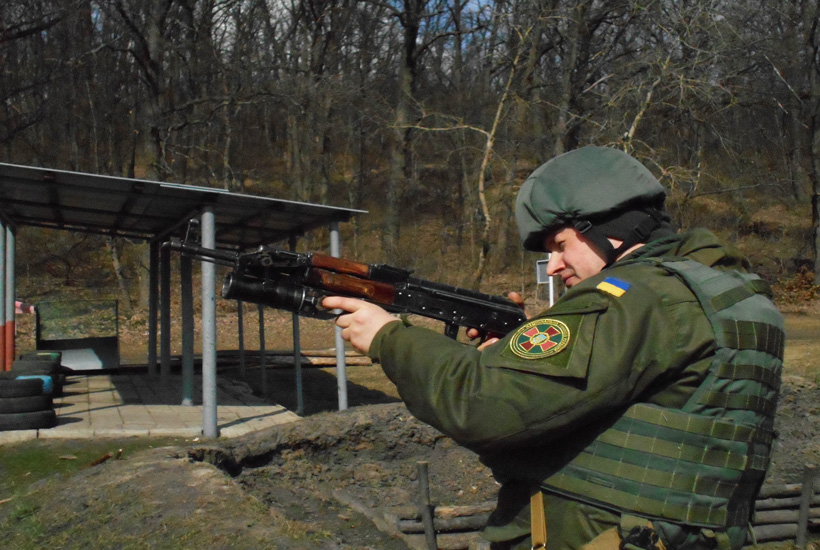 На военном стрельбище военнослужащие выполняли упражнения из автомата Калашникова и пистолета Макарова. отработали ведение огня из подствольного гранатомета ГП-25.