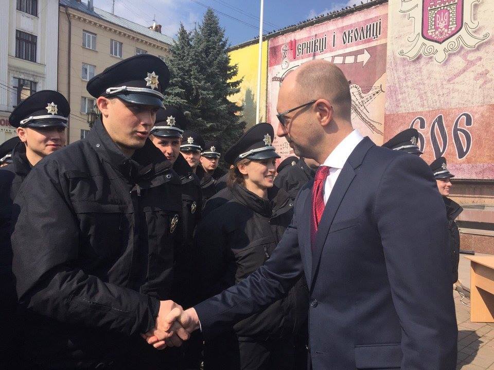 "К новой украинской полицейской семье присоединились мои родные Черновцы. Уже сегодня на улицы города выйдут почти 350 новых патрульных полицейских. И то, что эти смелые молодые парни и девушки принимают присягу в святой для христиан западного обряда день - на Пасху, означает, что все у них получится", - написал в соцсети премьер-министр Украины Арсений Яценюк.