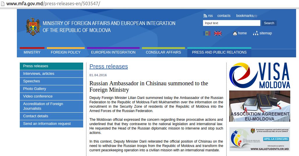 «Молдавский чиновник (министр иностранных дел Лилиан Дарий) выразил обеспокоенность этими провокационными действиями и подчеркнул, что они нарушают международное законодательство и нормы международного права», — говорится в сообщении ведомства.