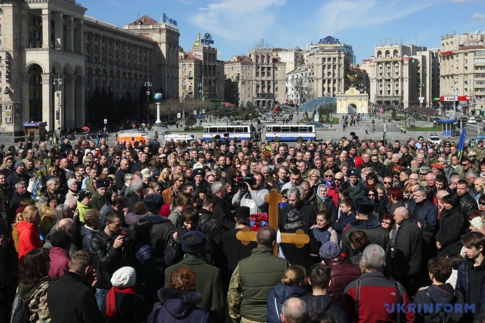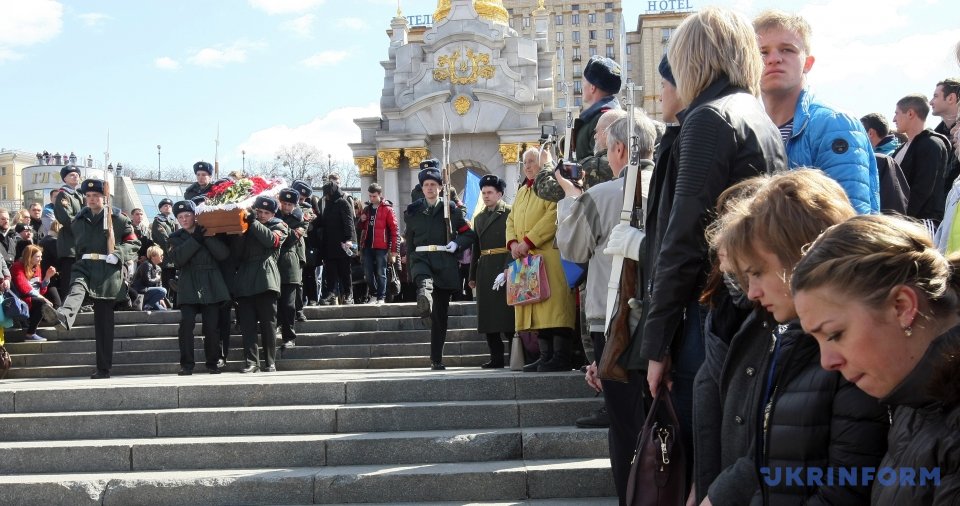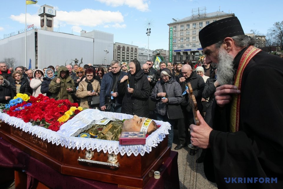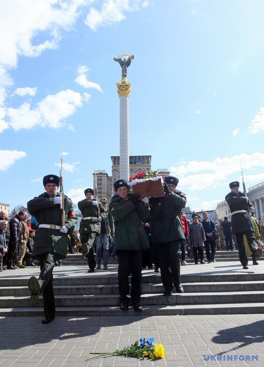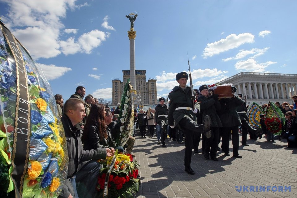 На Майдане Незалежности в Киеве состоялась церемония прощания с погибшим 31 марта бойцом АТО Дмитрием Годзенко (позывной "Годзила").