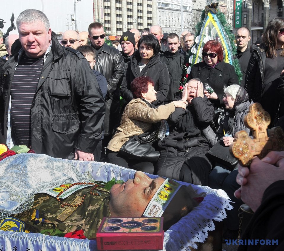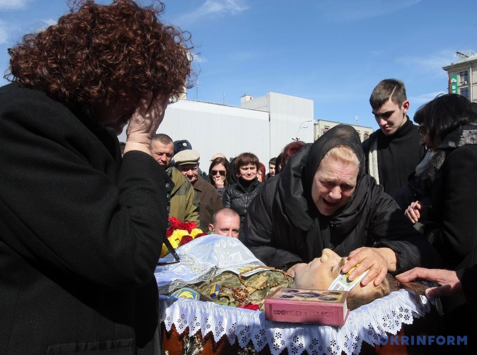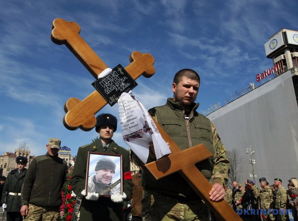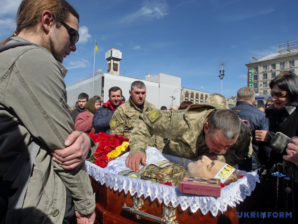 На Майдане Незалежности в Киеве состоялась церемония прощания с погибшим 31 марта бойцом АТО Дмитрием Годзенко (позывной "Годзила").