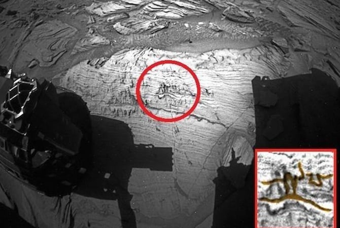 Как сообщает «КП в Украине», недавно в сеть попала фотография на первый взгляд обычной марсианской породы. Однако пользователи интернета увидели на ней некие символы. Они напоминают наскальные рисунки первых людей Земли, изображающие бегущего человечка.