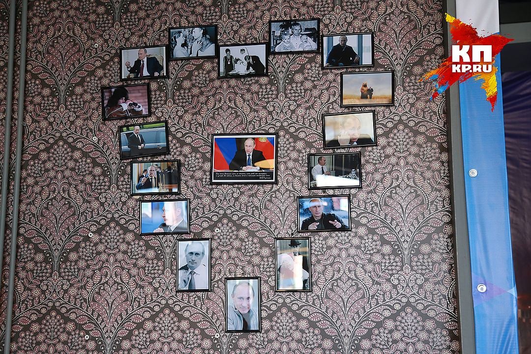 Заведение называется "Президент", на стенах сердечком выложены портреты Владимира Путина, а коктейли подают в цветах триколора.