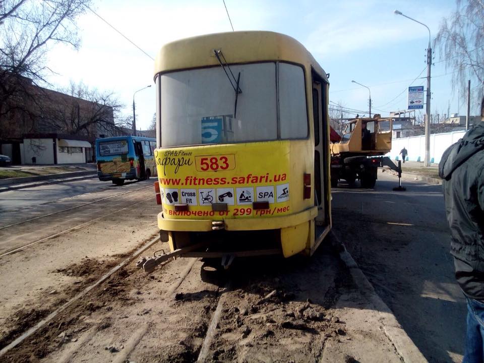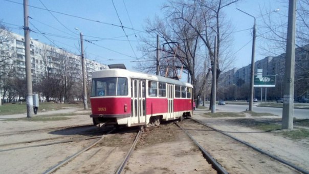 Третье ЧП - сход трамвая с путей - произошло сегодня на Салтовском шоссе, сообщают пользователи соцсетей.