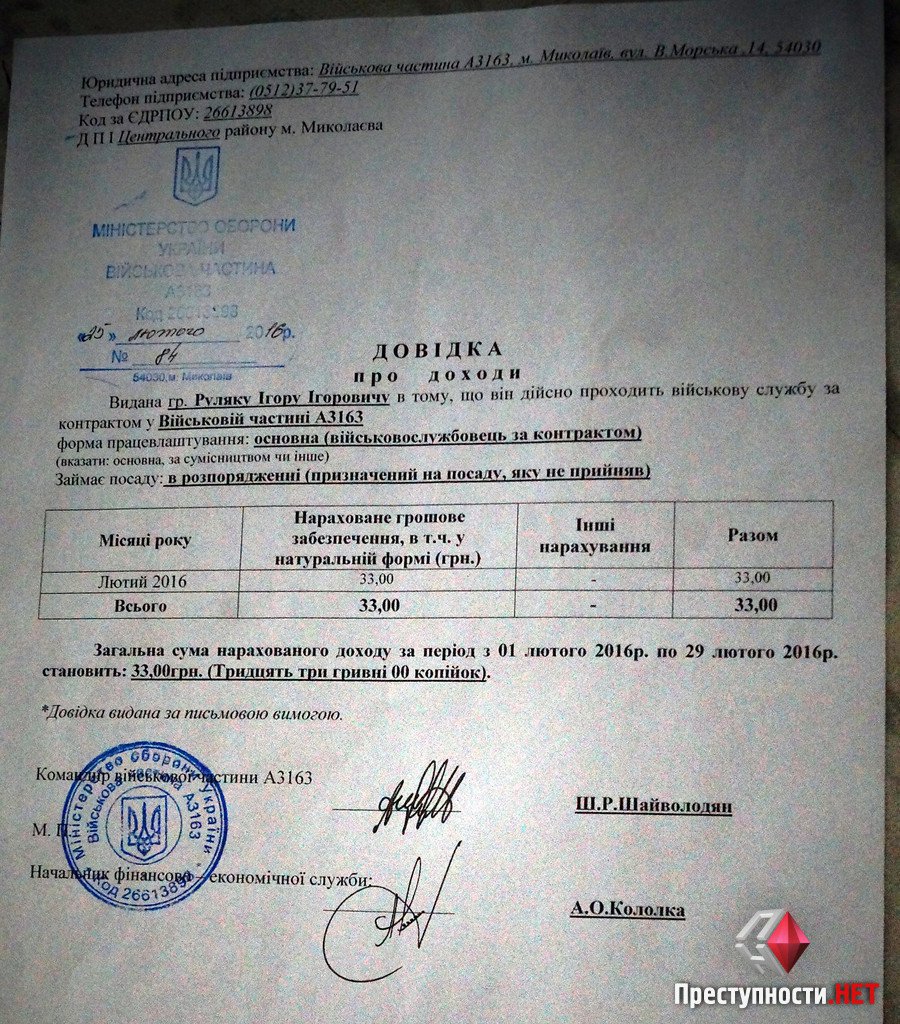 Матрос Игорь Руляк, служащий по контракту в ВЧ А3163, обвиняет руководство ВМСУ в том, что после того, как он начал активно критиковать и оглашать коррупционные действия командования, его из Одессы перевели в Николаев, не предоставив при этом места для проживания, а потом и вовсе выгнали из военной части, где он жил.