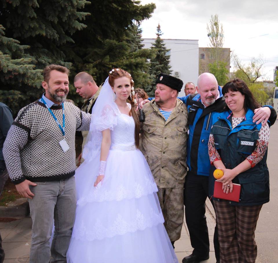 В ответ на сообщение в социальных сетях: фотография была сделана в июне 2015 года. СММ ОБСЕ сожалеет о данном инциденте. Хотя наблюдатели не посещали свадьбу как таковую, фото четко указывает на ошибочное решение с их стороны. Эти наблюдатели больше не работают в миссии.
