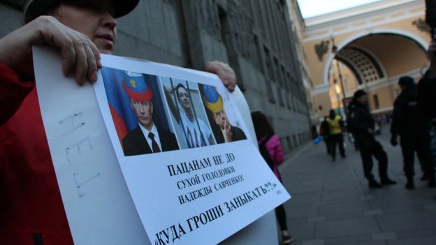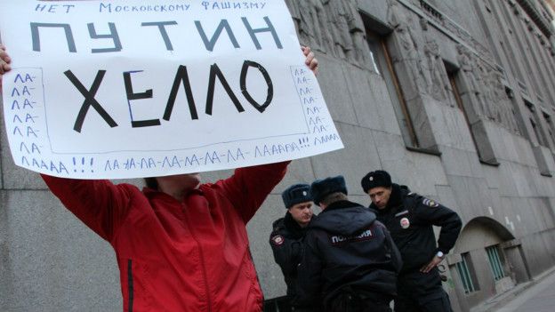 Как сообщает «Би-би-си», митинг не был согласован с властями, его немногочисленные участники требовали отставки президента России Владимира Путина в свете скандала с панамскими офшорами.