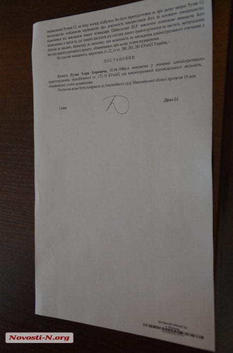 - Признать Игоря Руляка виновным в совершении правонарушения, предусмотренного статьей 172-10 КупАП, от административной ответственности освободить, ограничившись устным замечанием.