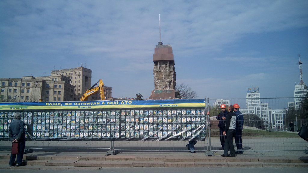 Харьковские городские власти начали демонтаж постамента на площади Свободы, на котором стоял памятник В.Ленину.
