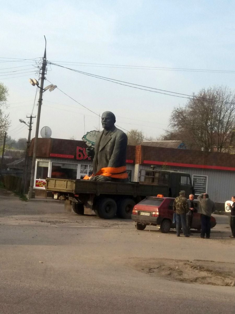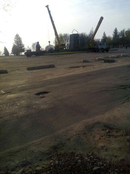 Фотофакт: В Чугуеве снесли Ленина 12 апреля 2016 09:29 В Чугуеве (Харьковская обл.) сегодня утром демонтировали памятник Ленину. Фото: Типичный Чугуев