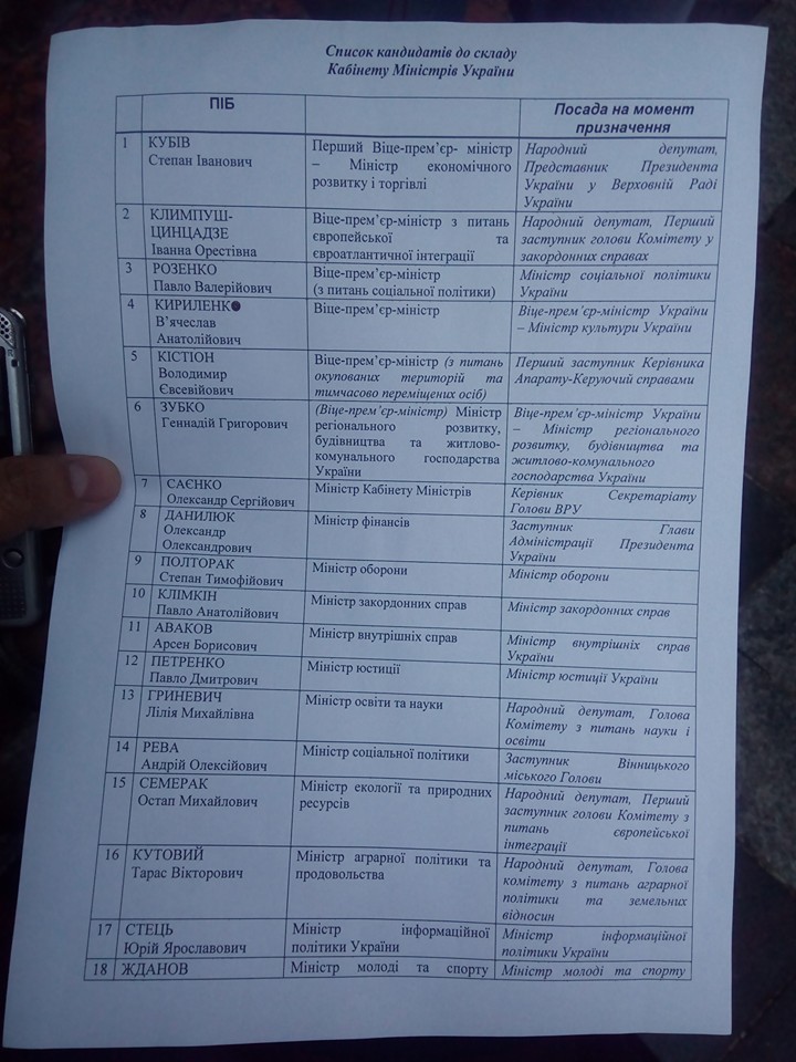 "Еще не согласован министр здравоохранения, но завтра этот вопрос, возможно, решится… Это квота БПП, завтра они должны определиться и, очевидно, коалиция должна согласовать эту кандидатуру", - сказала Сюмар.