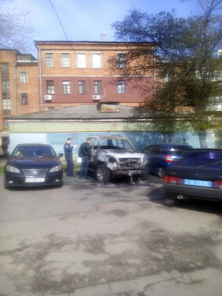 В ночь на пятницу во дворе дома по ул.Данилевского в Харькове сгорел автомобиль Toyota Prado экс-депутата горсовета Дмитрия Маринина.