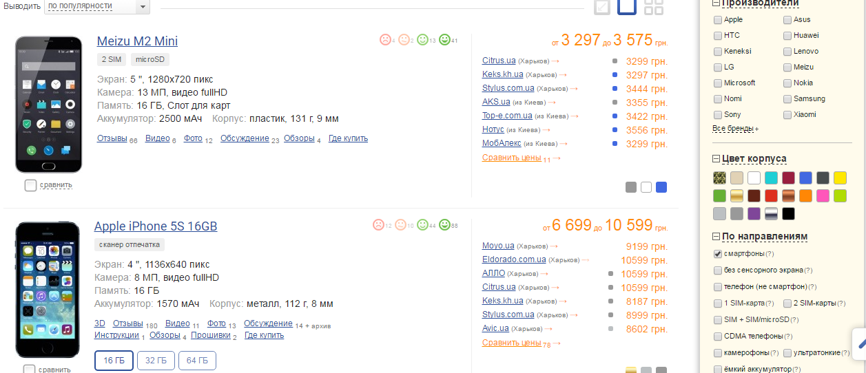А поэтому, всем, кто задумывается сменить стандартный мобильник на ваш персональный мини-компьютер в кармане рекомендуем каталог смартфонов от сайта e-katalog. здесь представлен полный ассортимент смартфонов от всех ведущих производителей. Причем, сайт сделан в форме сервиса для сравнения цен, где можно не только ознакомиться с техническими характеристиками выбранного гаджета, но и сразу же увидеть, кто почем его предлагает в вашем городе. Есть функция для сравнения характеристик разных моделей. И конечно же фильтры для отсеивания по бренду, цвету, типу, диагонали экрана, операционной системе, объему встроенной памяти и так далее.