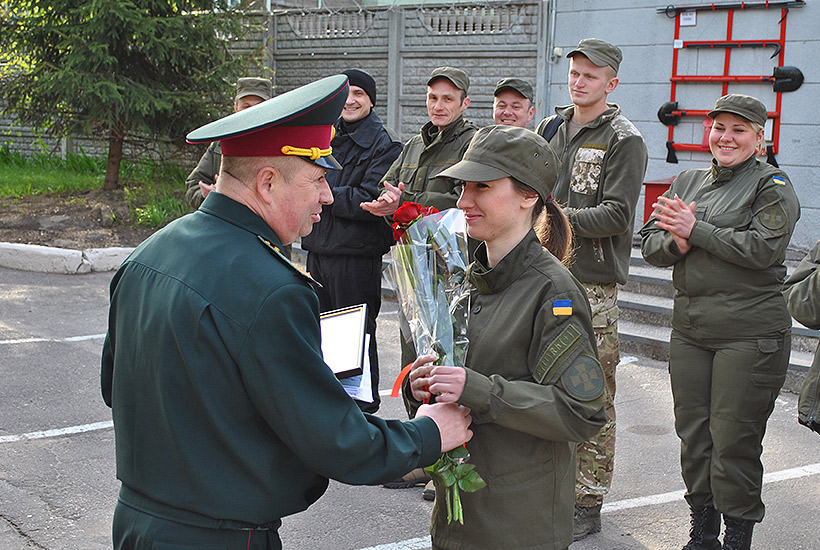 В завершении сборов, опять же, не обошлось без сюрприза – одна из участниц собрания Александра Савченко в этот день отпраздновала День своего рождения. Заместитель начальника Восточного территориального управления полковник Василий Пилипенко поздравил от всего коллектива именинницу с ее праздником, а остальных с наближаючимся профессиональным праздником. Он поблагодарил всех за активное участие в сборах, а также вручил грамоты и памятные фото.