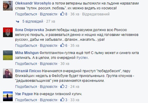 "В торжественной церемонии приняли участие местные популяции белых медведей, морских зайцев, а также группа полярных березок и более 200 видов фитопланктона", - с юмором прокомментировали акцию на странице "Роисся 24" в Facebook, отмечает Апостроф.