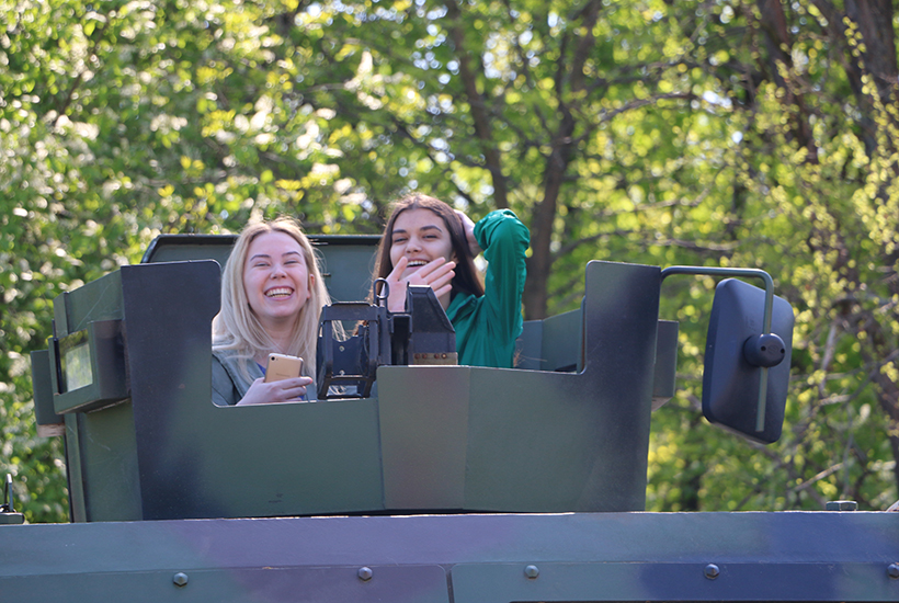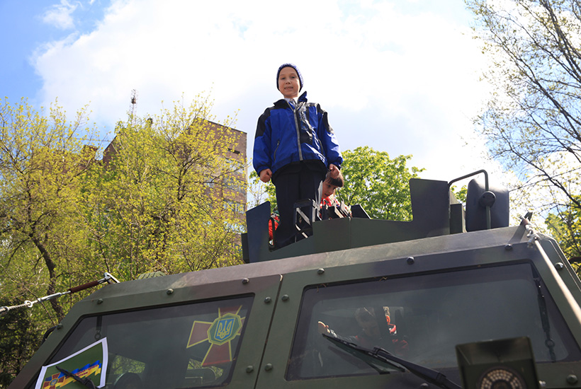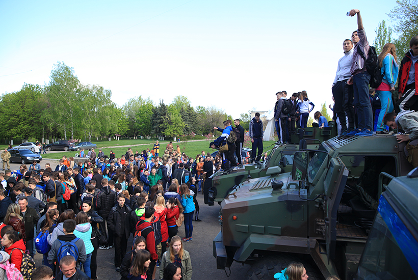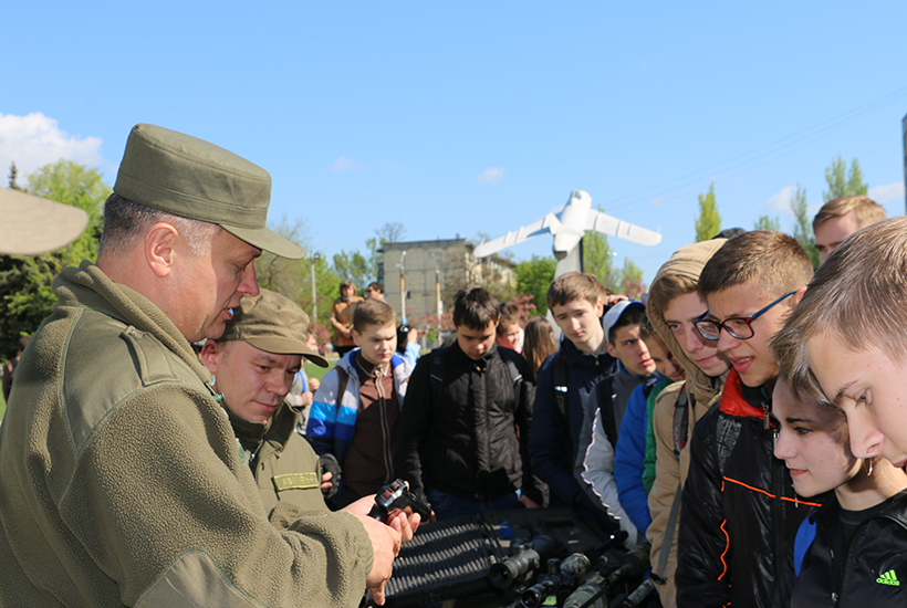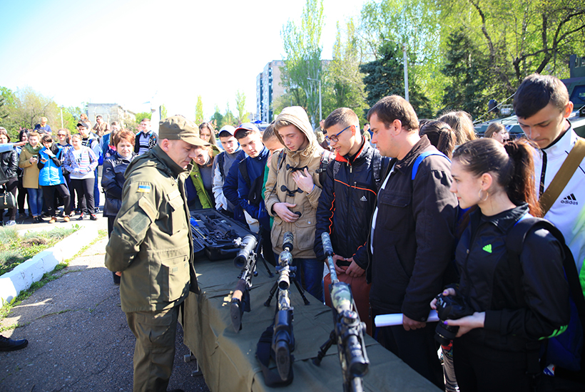 Для ознакомления учащихся старших классов с техникой и оружием Национальной гвардии Украины были предоставлены бронеавтомобили, среди которых выделялся своим грозным видом и мощью КРаЗ «SHREK», специальные автомобили и разнообразное стрелковое оружие.