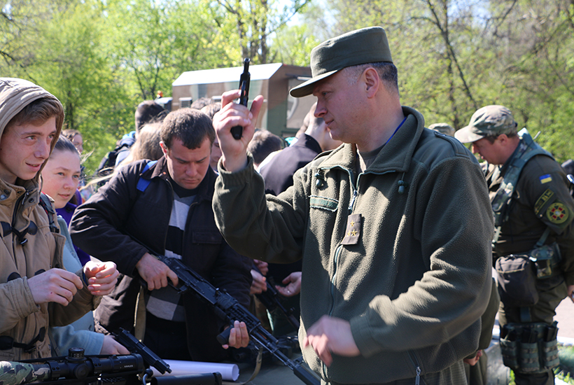 Военнослужащие Национальной гвардии Украины приняли участие в открытии учебно-полевых сборов для желающих старшеклассников по предмету «Защита Отечества» на базе Центра внешкольной работы г. Краматорска.