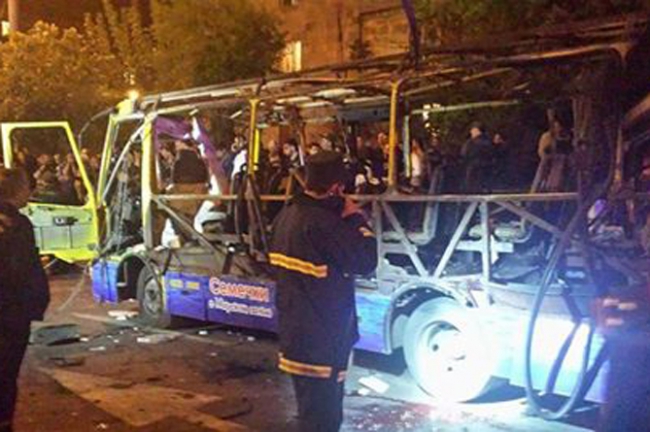 Сигнал об инциденте поступил в 21:51 по местному времени. Автобус взорвался на улице Алабяна.