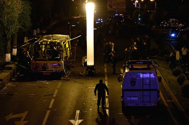 Рейсовый автобус марки "Богдан" взорвался в центре Еревана вечером в понедельник. В результате взрыва погибли, по официальным данным, два человека. Еще как минимум семь получили ранения. Двое подростков находятся в тяжелом состоянии.