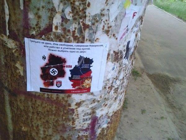 "Это расклеивают в Одессе в преддверии 2 мая. На 7-м километре предпринимателей агитируют за сепарский проект оккупационного блока, так называемое "Порто-Франко". На Староконке и Привозе неутомимые адепты х@@ла тоже ведут неприкрытую агитацию с афигительными листовочками. Рассказывают про прелести новороссии, запугивают простых горожан и призывают мстить бандеровцам", - отметила активистка.