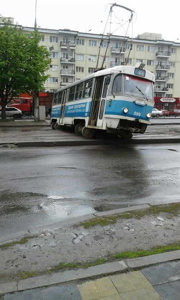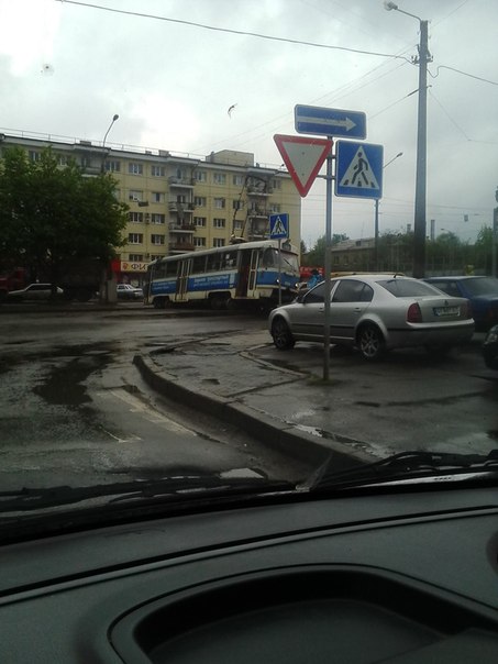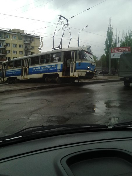 Сегодня около 12:45 в Харькове на перекрестке улиц Морозова и Киргизской сошел с рельсов трамвай 8 маршрута.