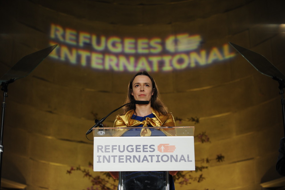 Международная гуманитарная организация Refugees International вручила награду главе правления благотворительного фонда «Станция Харьков» Елене Гончаровой за вклад харьковских волонтёров в помощи переселенцам в Украине.