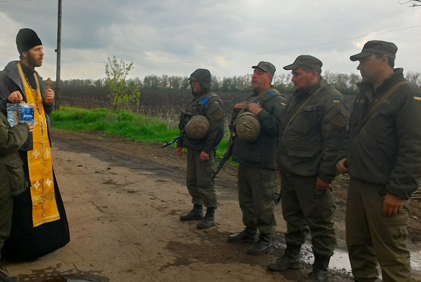 Иерей Артемий провел молебен на каждом блокпосту, освятил места несения службы и благословил каждого военнослужащего на защиту Родины.