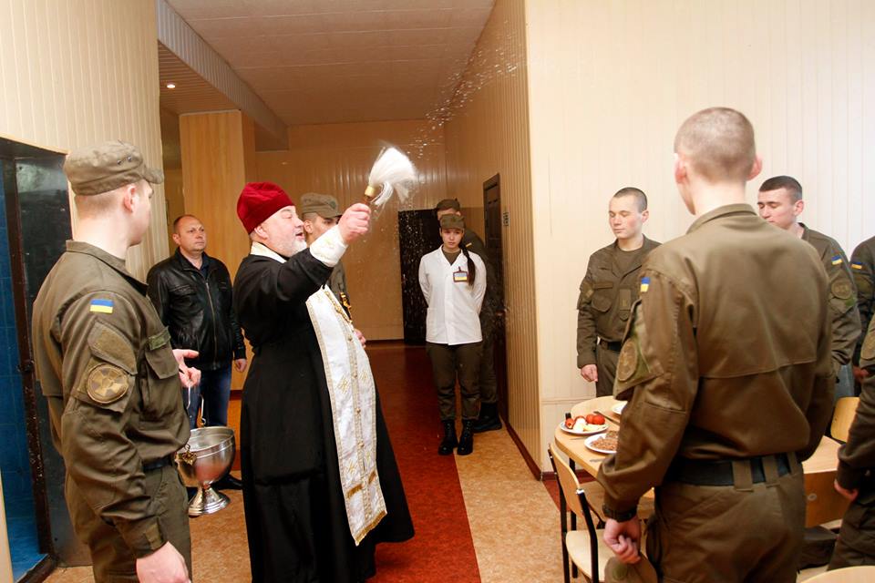Офицеры и курсанты Академии НГУ приняли участие в церковных богослужениях, святили корзины с продуктами и поздравляли друг друга с праздником Христова Воскресения. По случаю праздника в Национальную академию Национальной гвардии Украины на праздничный завтрак прибыл настоятель Казанского храма города Харькова протоиерей Михаил.