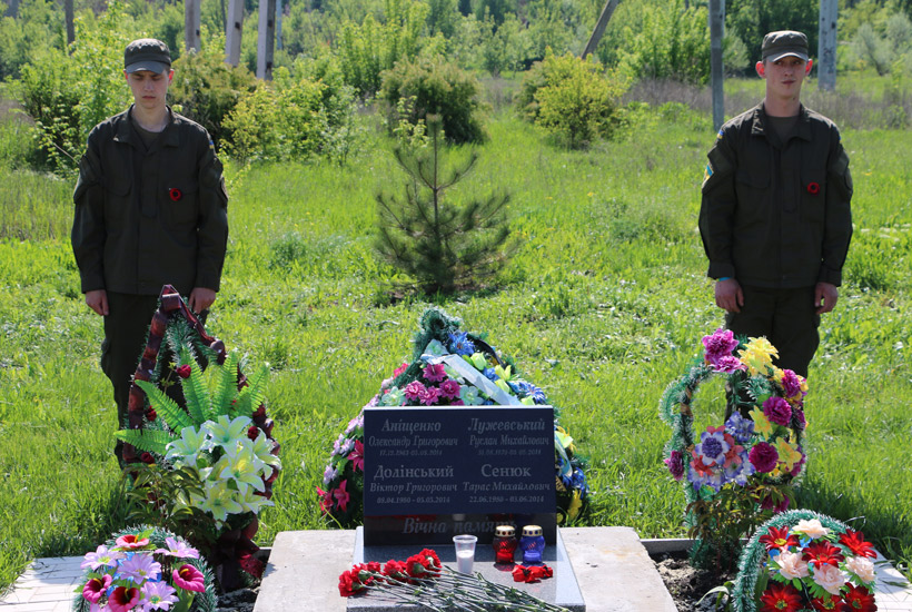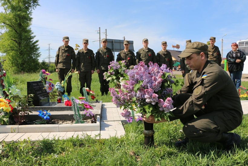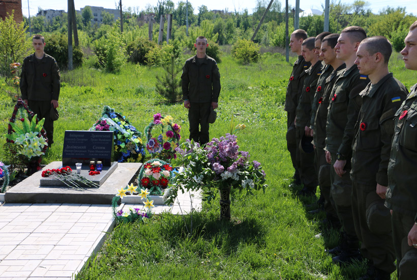 5 мая военнослужащие воинской части 3035 Национальной гвардии Украины провели митинг и возложили цветы к памятному знаку на месте гибели военнослужащих на дороге Киев-Должанский возле поселка Семеновка.