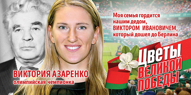 Социальные плакаты "Цветы Великой Победы" с изображением известных людей появились на улицах Минска, сообщает Главное со ссылкой на БЕЛТА. Плакаты стали частью республиканского патриотического проекта "Цветы Великой Победы", посвященного 71-й годовщине Победы во Второй мировой войне. На плакатах изображены известные люди нашей страны, а также их родственники, принимавшие участие в боевых действиях. В проекте приняли участие олимпийские чемпионки Дарья Домрачева и Виктория Азаренко, футболист БАТЭ и национальной сборной Игорь Стасевич, солист Большого театра Илья Сильчуков, прима-балерина Большого театра Ирина Еромкина, лидер группы J:Морс Владимир Пугач, хоккеист национальной сборной Алексей Калюжный, врач-трансплантолог Олег Руммо, телеведущая ОНТ Марина Грицук, рекордсмен Книги рекордов Гиннесса Кирилл Шимко