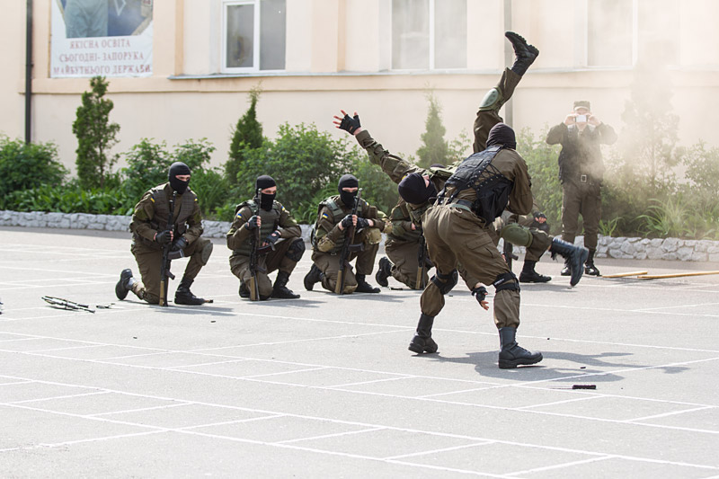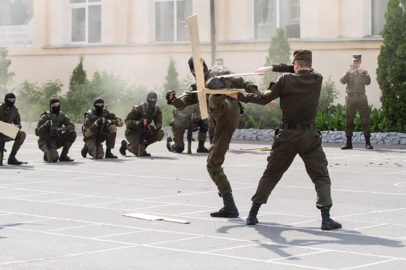«Сегодня соревнуются разные года обучения. Однако, практические навыки, которые вы показываете, мы обучаем с первых дней вашего обучения в Академии. Поэтому я уверен, сегодня каждый покажет высокий уровень и настоящий боевой дух. Лучший взвод специального назначения будет представлять Академию на показательных выступлениях во время проведения общегородских торжеств. Пусть победит сильнейший!», - такими словами начал соревнования начальник командно-штабного факультета Академии полковник Вячеслав Овчаренко.