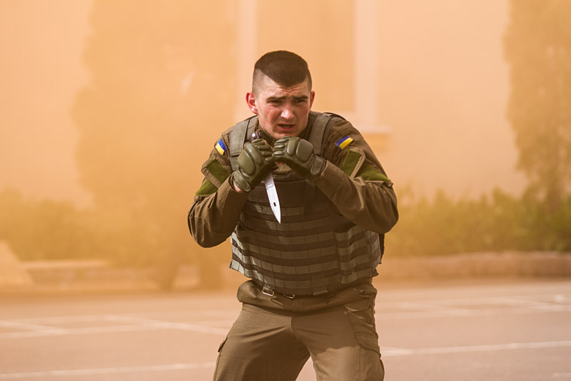 В этом году среди участников выступала и девушка - Оксана Фролова. Ранее она была бойцом добровольческого батальона им. Кульчицкого, затем проходила службу по контракту в столичном Барсе, участница боевых действий, и теперь она - курсант взвода специального назначения.