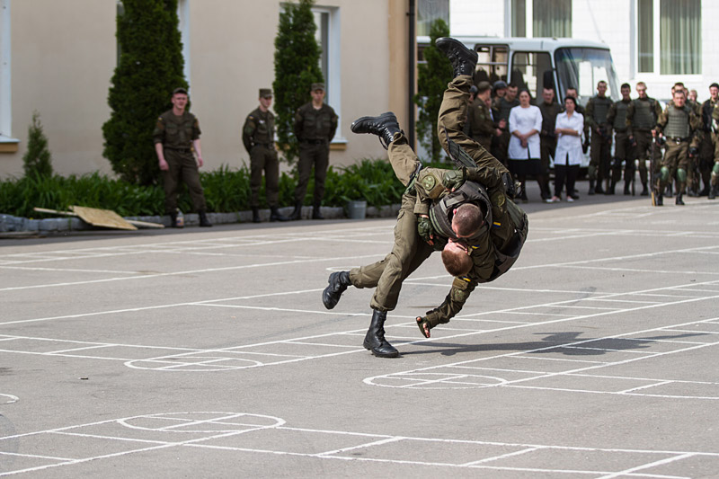 Выступления всех спецназовцев оказались очень энергичными и зрелищными. Каждый прием сопровождался громкими аплодисментами и переживания товарищей. Курсанты сочетали показательные выступления с элементами рукопашного боя, приемами тактики НГУ и различными боевыми искусствами, которыми профессионально занимается почти каждый будущий офицер, который мечтает стать бойцом элитного подразделения.