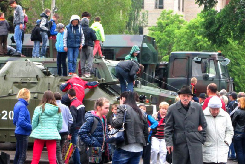Среди зрителей и участников шоу не было равнодушных, которые бы не поинтересовались характеристиками машин и не сфотографировались вместе с бойцами. Конечно, наибольший интерес вызвали «Козак» и БРДМ, на которые залезали все желающие и оттуда смотрели на происходящее с высоты.