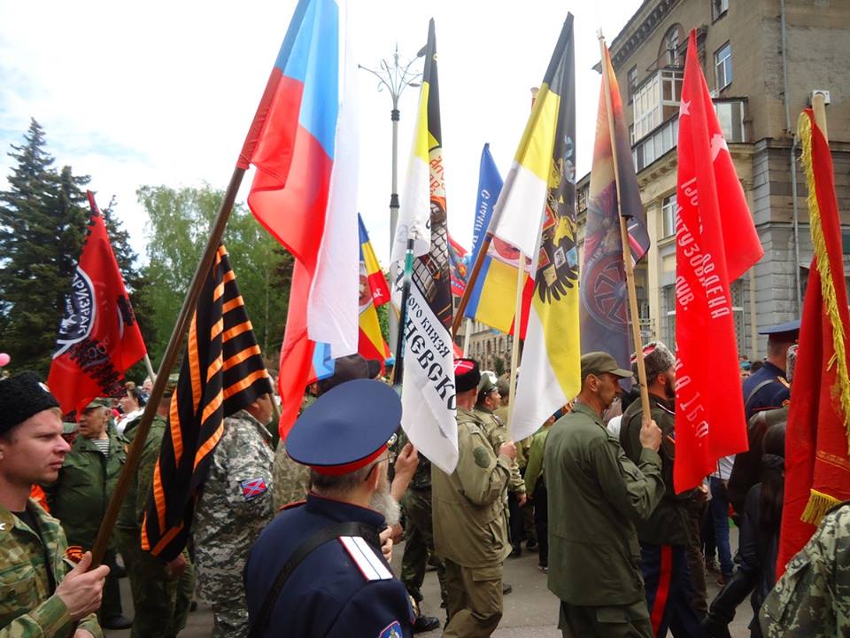 Представители незаконных вооруженных формирований «отличились» обилием флагов, среди которых можно было заметить флаг казачьего атамана Краснова (во время Второй мировой войны — начальник Главного управления казачьих войск Имперского Министерства Восточных оккупированных территорий Германии), знамена с языческими коловратами (одна из разновидностей свастики), флаги с царской символикой.