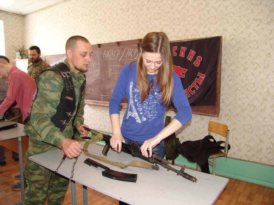 В оккупированном Алчевске члены мотоклуба «Русские мотоциклисты» провели в одной из школ города урок «начальной военной подготовки».