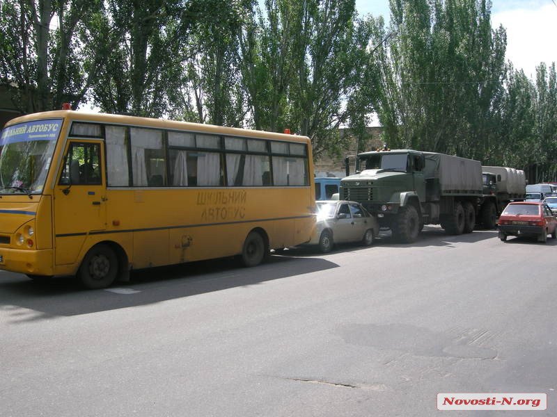 Днем в воскресенье, 15 мая, на ул. Пушкинской в Николаеве произошло ДТП с участием двух армейский грузовиков, школьного автобуса и легкового автомобиля Daewoo Nexia. Об этом сообщает Главное со ссылкой на Новости-Н.