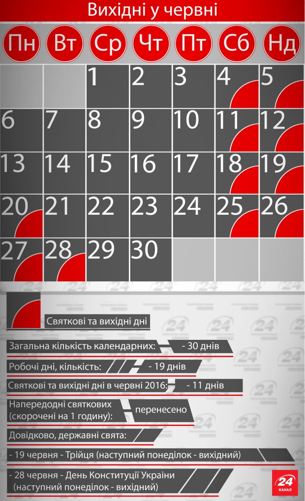 В июне этого года украинцы будут отдыхать до 11 дней. Об этом сообщает канал 24.