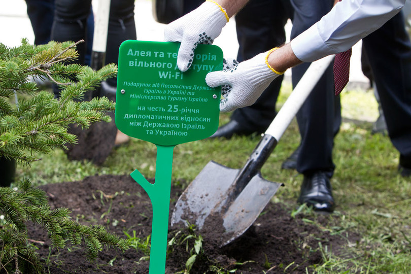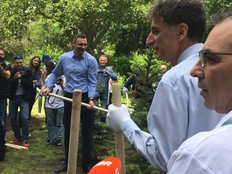 Мэр Киева Виталий Кличко вместе с послом Израиля в Украине Элиавом Белоцерковским высадил Аллею Израиля в Мариинском парке.