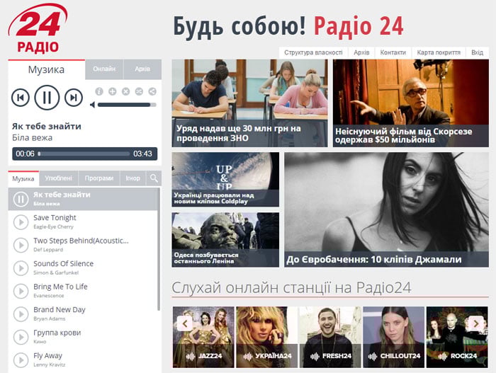 - Радио 24. Немного в украинском сегменте Сети найдется новостных ресурсов, которые предлагают пользователю собственный аудиопродукт. Здесь это есть. И не только в десктопной версии, но и в приложениях для смартфонов, работающих на различных платформах – будь то iOS или Android. Лучшая музыка и актуальные новости каждые полчаса.