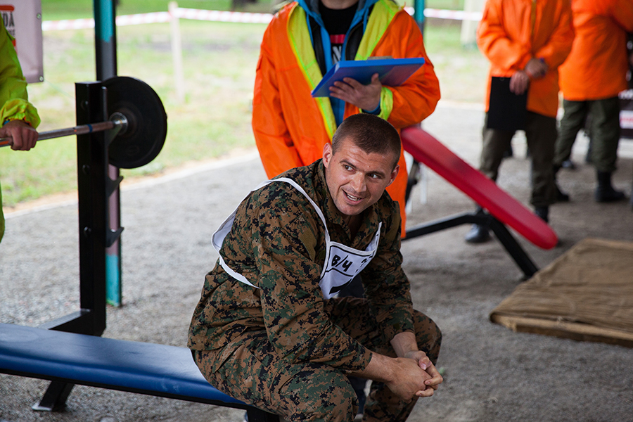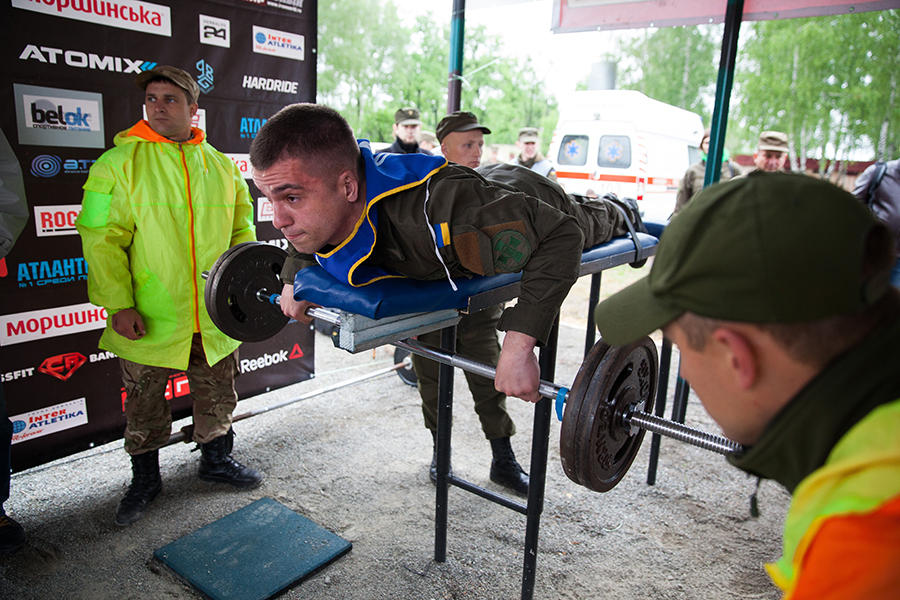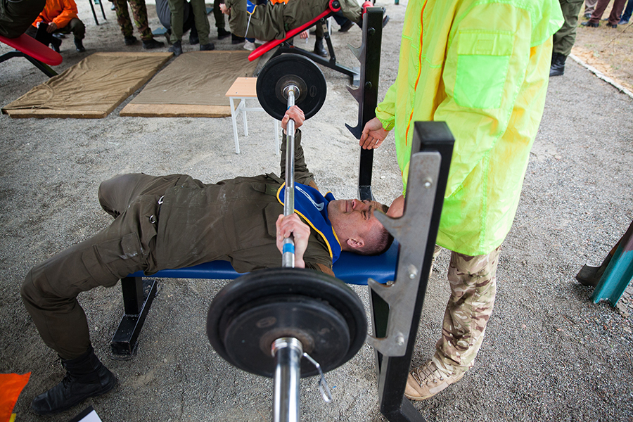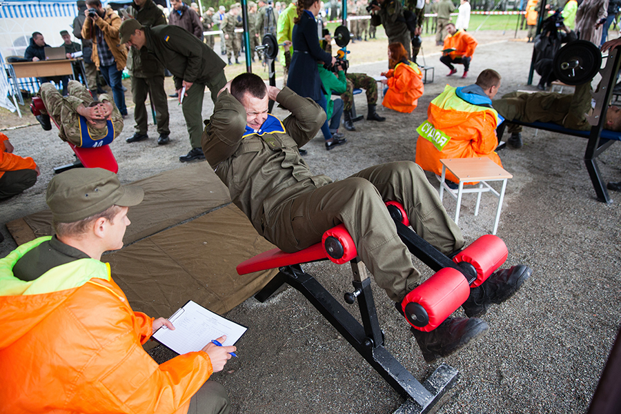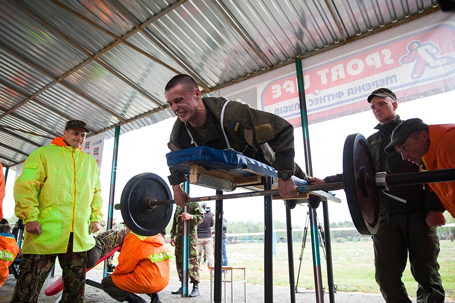 «По моему мнению, самое тяжелое последнее упражнение, потому что дыхалка уже сбивается и военнослужащему трудно умело выполнять подъем штанги. Но мы покажем достойный результат, надеюсь, выиграем первое место», - чуть отдышавшись, делится впечатлениями сержант Михальчук. Он представляет Национальную академию Нацгвардии.