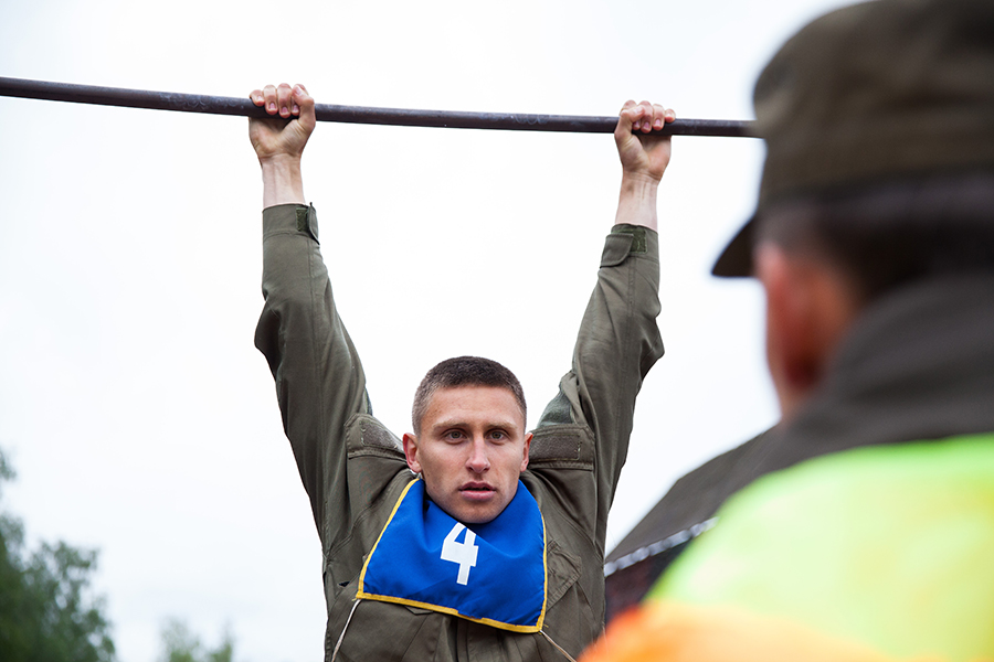 Уровень физической подготовки участников чемпионата впечатляет. Стальные мышцы гвардейцев проходят испытания подтягиванием на перекладине, приседаниями с гирей, жимом штанги и качанием пресса. Когда доходит дело до последнего испытания - подъема штанги лежа на доске - не каждый гвардеец выдерживает бешеный темп соревнований.