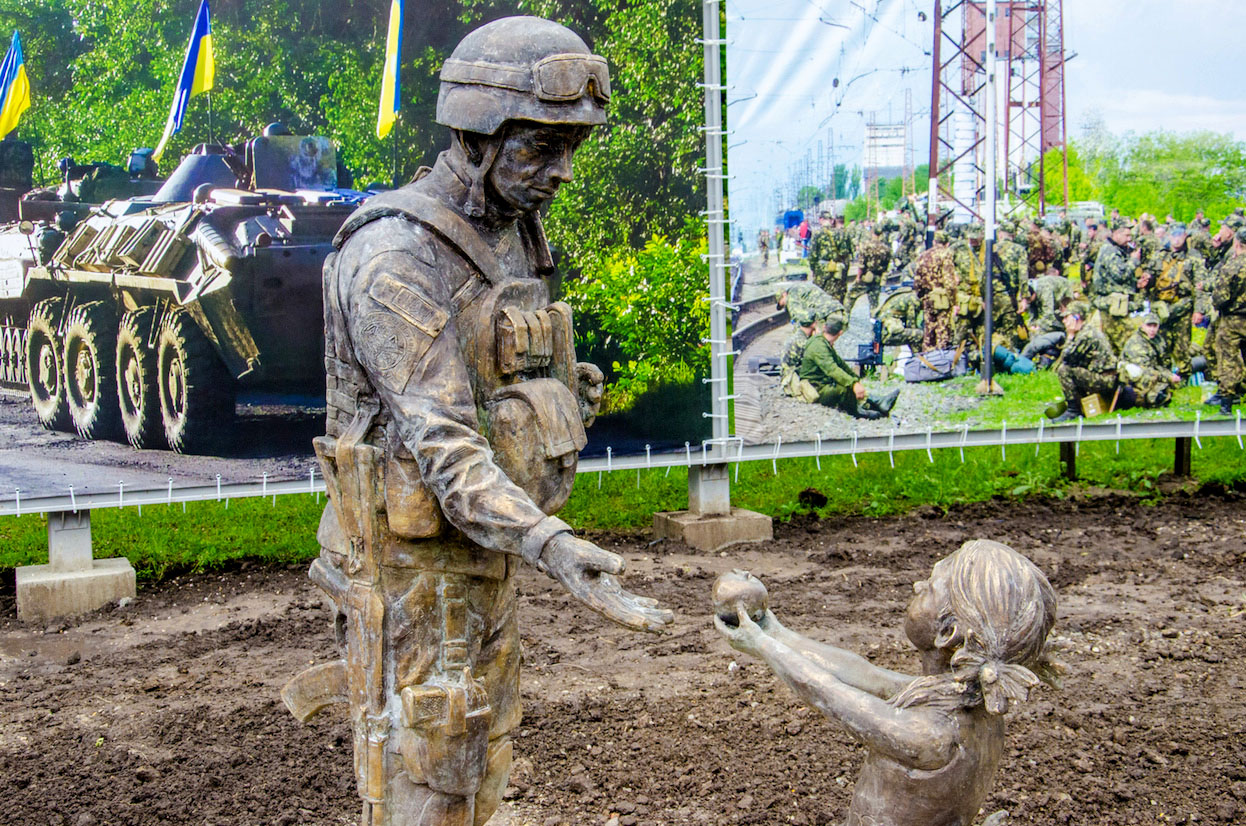 "В центре экспозиции будет скульптура бойца, которому маленькая девочка дает яблоко. На ее создание нас вдохновила реальная история: военный спас пятилетнюю девочку, родители которой погибли под обстрелом. Парень был ранен и ему пришлось сдаться в плен, однако жизнь девочки он спас", - рассказала координатор Центра помощи участникам АТО Наталья Шулика.