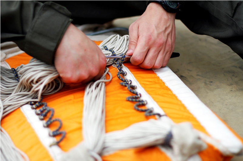 Первое знакомство с парашютом у курсантов прошло еще в Академии - они изучали строение парашюта и как правильно его складывать.