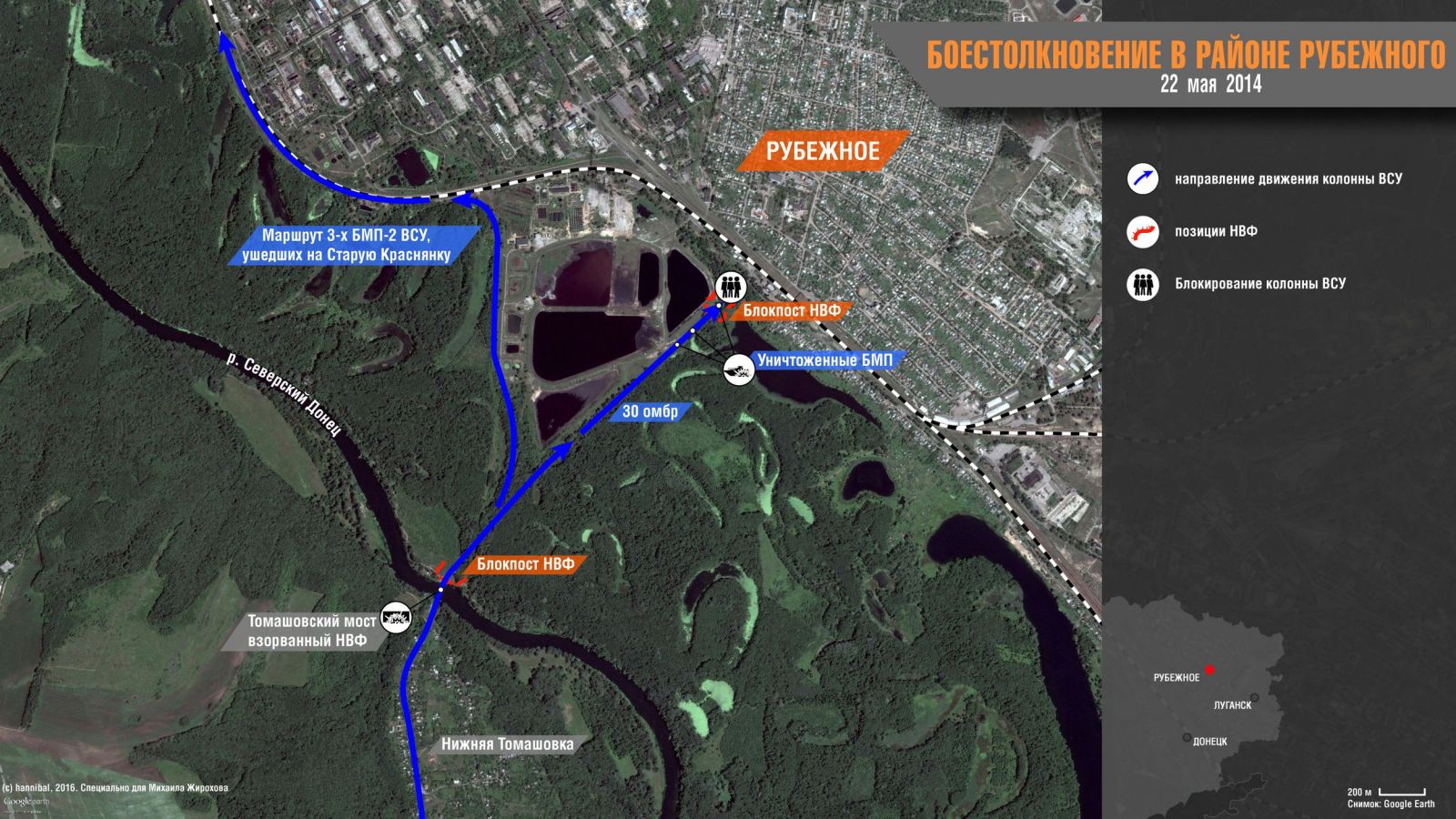 Схема столкновений около Рубежного 22 мая 2014 г.