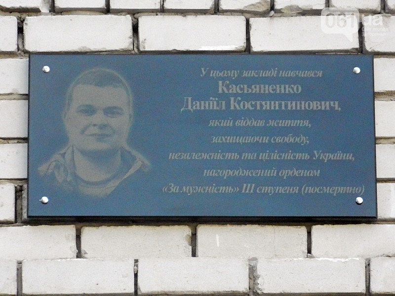 Почтить память героически погибшего воина пришли педагоги и ученики гимназии, родные и близкие Даниила, его друзья, боевые соратники, местные жители и неравнодушные активисты, представители местных органов власти и запорожской "Самообороны". Доску открыл отец героя Константин Касьяненко.