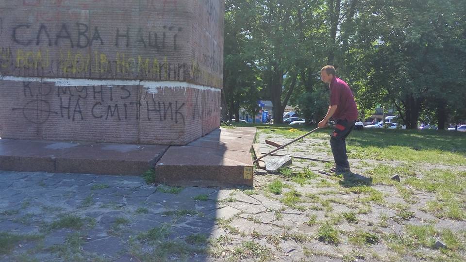 В Киеве, начали демонтаж памятника чекистам на Лыбидской площади. Об этом на своей странице в Facebook сообщила журналист Марьяна Пьецух.