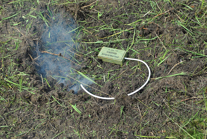Каждый офицер высчитывал необходимое количество взрывчатого вещества для подрыва указанного дерева, железобетонной плиты или металлического изделия; разведчики соединили огнепроводный шнур с капсюлем-детонатором и осуществили подрывы тротиловых шашек.